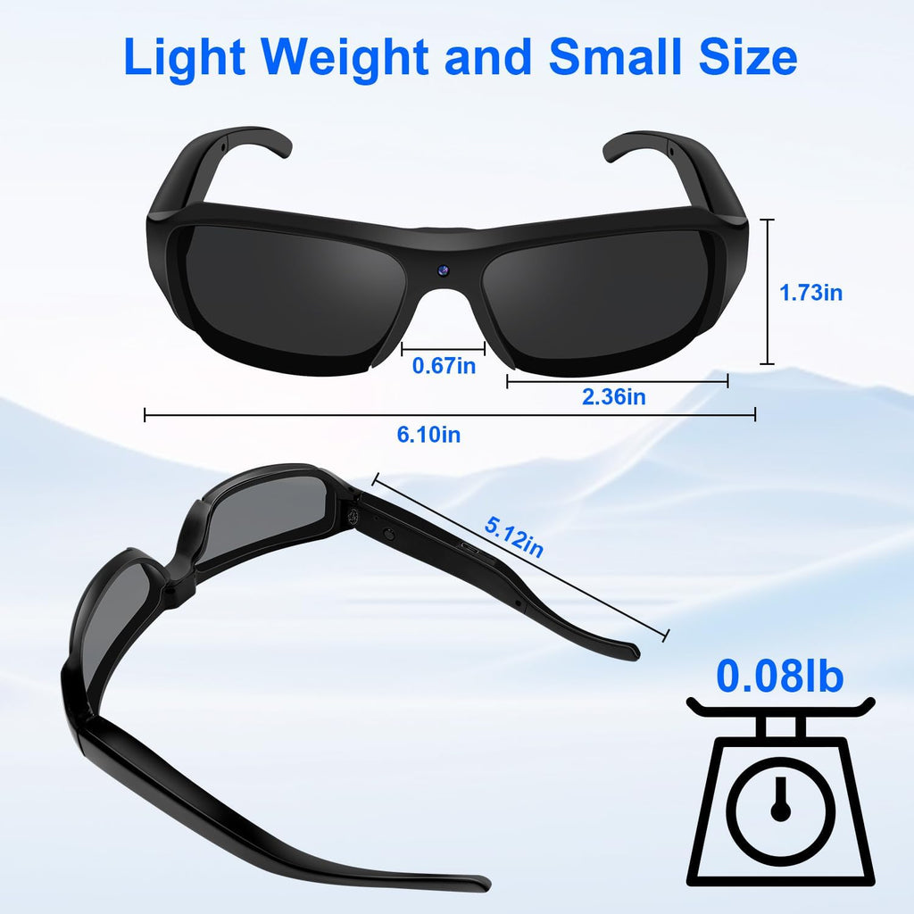 • GAFAS DE SOL CON CÁMARA 2 EN 1: Con dos funciones: gafas de sol y cámara, parecen gafas de sol comunes, ideales para ciclismo, escalada, esquí, senderismo, viajes, conducción, pesca, camping, etc. Libera tus manos y graba cada momento de tu vida o aventura con esta cámara de acción.