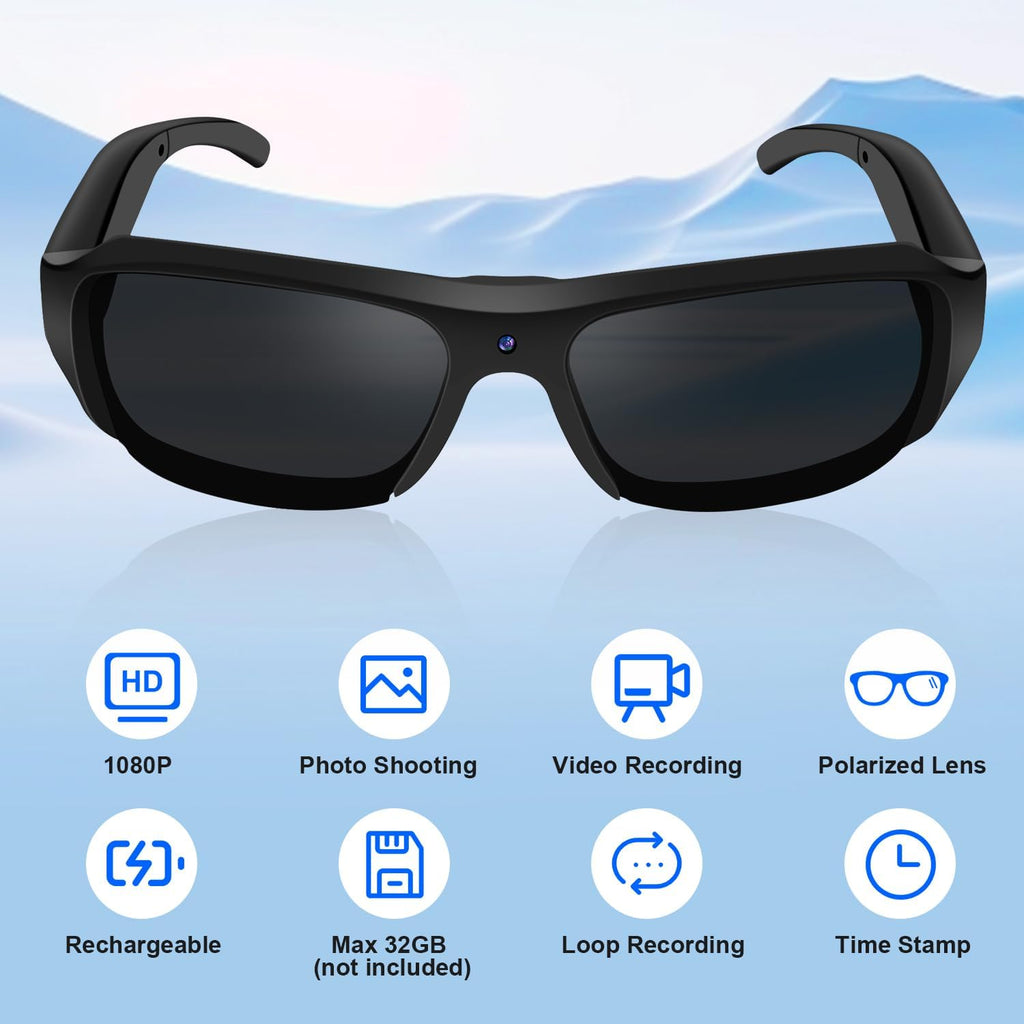 • GAFAS DE VIDEO CON CALIDAD HD: Con una lente completamente nueva, graba videos Full HD 1080p/30 fps. Los píxeles de alta definición te brindan una experiencia diferente. Con batería recargable incorporada, la cámara funciona durante aproximadamente 1 hora después de cargarla por completo. Admite grabación en bucle y admite tarjetas SD de hasta 32 GB.