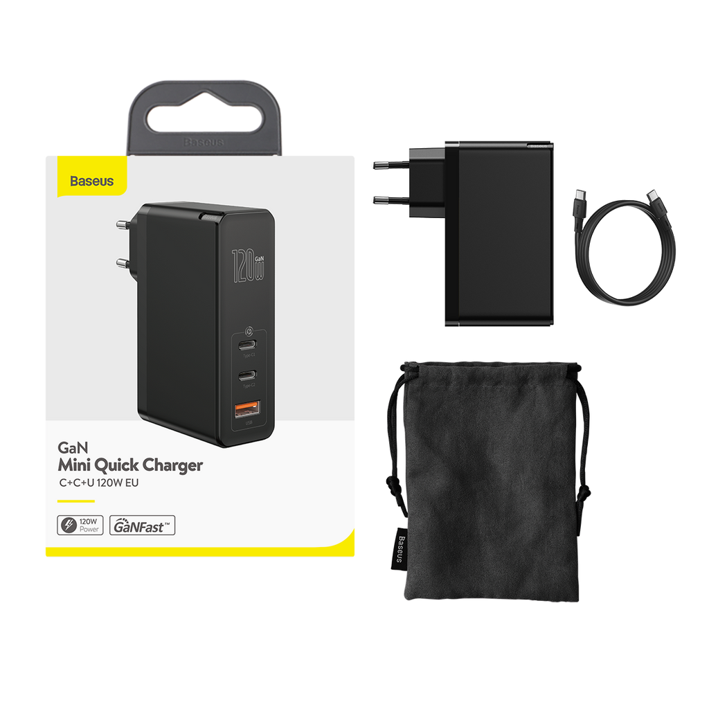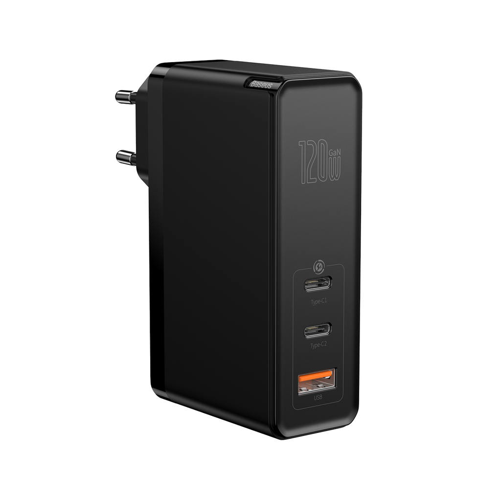 - Cargador portatil carga rapida (Baseus GaN2 120w) 2 Puertos tipo c + 1 Puerto usb A