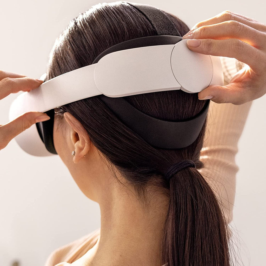 La correa oculus Quest 2 también cuenta con una forma ergonómica que se adapta a la forma natural de la cabeza, lo que significa que se siente como una extensión natural del usuario. Esto reduce la tensión en el cuello y los hombros, lo que permite a los jugadores disfrutar de largas sesiones de juego sin sentir fatiga o dolor.