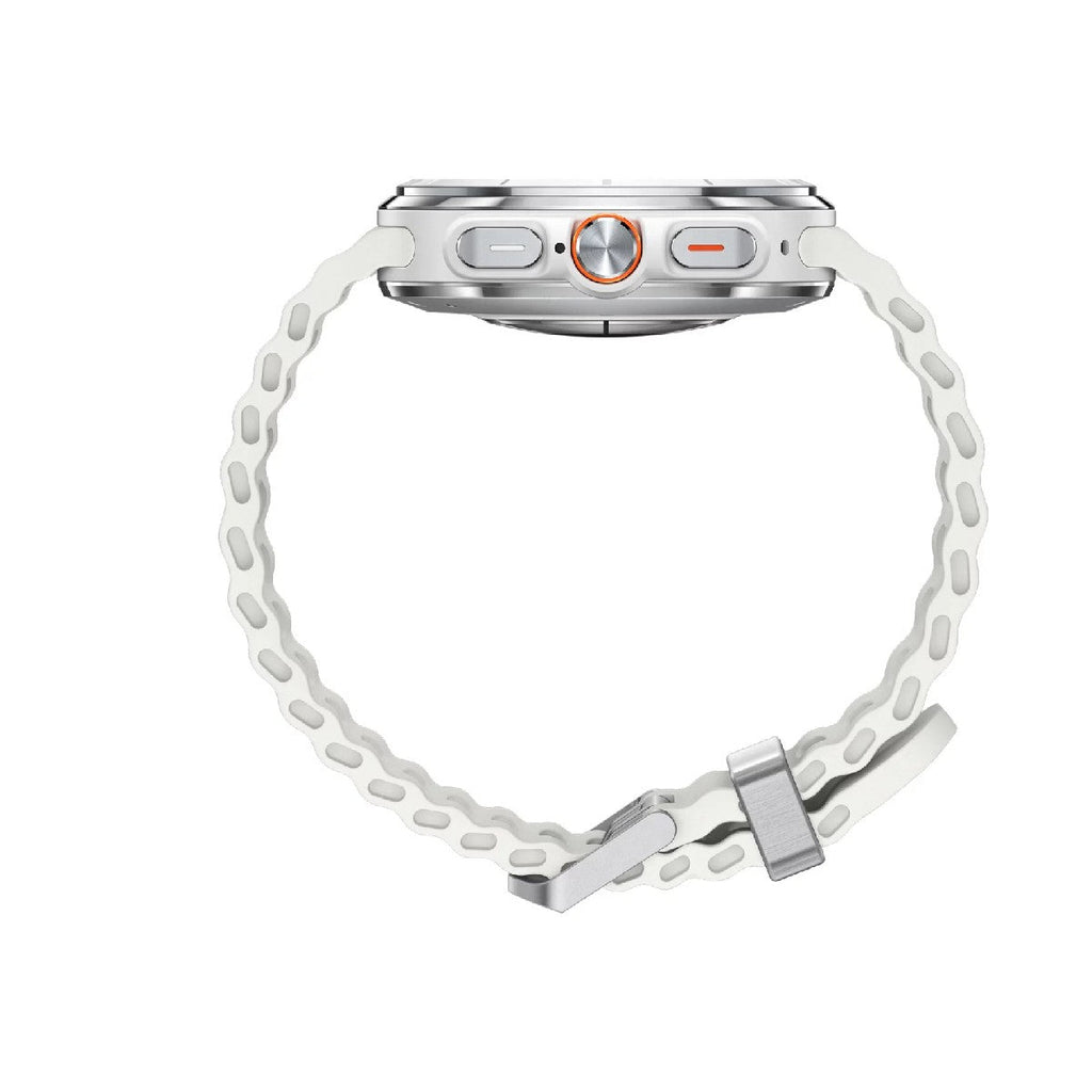 Nunca más te preocuparás por tu reloj inteligente. Diseñado con una estructura de titanio, es el más resistente de Samsung y puede soportar hasta 10ATM de agua y un rango de altitud de 500 metros bajo el nivel del mar hasta 9000m. Una nueva era para tu salud. Mano a mano con Galaxy AI.