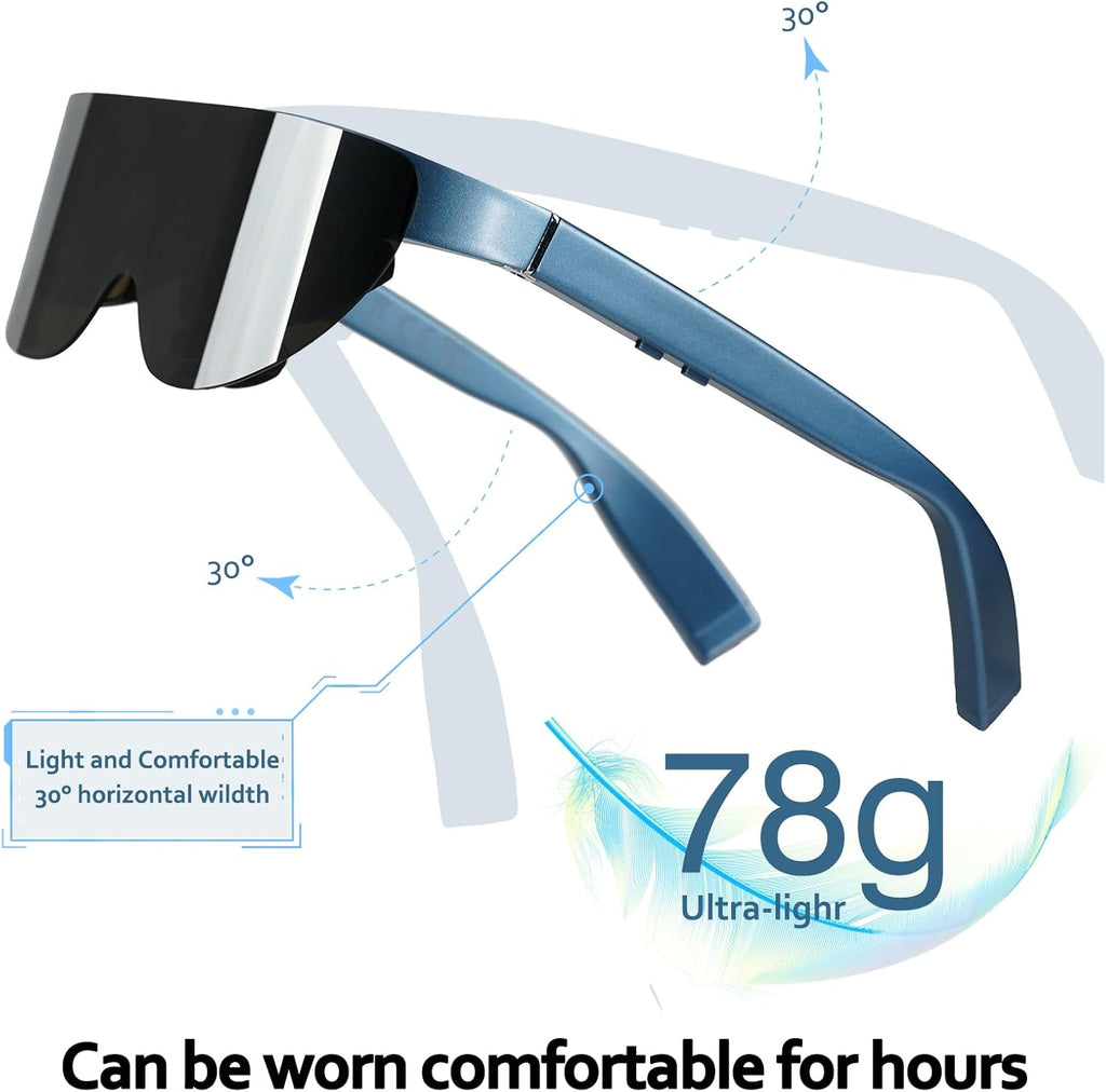• 【EXTREMELY COMFORTABLE HIGHEST EYE-CARE CERTIFIED-Both Waring and Viewing 】 The only 79g weight smart glasses with zero-pressure nose pads and ultra soft temples give your a enjoyment of all day wearing and ensuring maximum comfort.Up to 1800 nits high brightness ensure your feeling of no tired during longtime working.