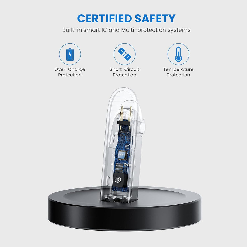 • CARGA INTELIGENTE Y SEGURA: Chip de seguridad integrado con protección contra sobretensión, sobrecalentamiento y cortocircuito para cargar tus gafas Ray-Ban Meta sin preocupaciones.