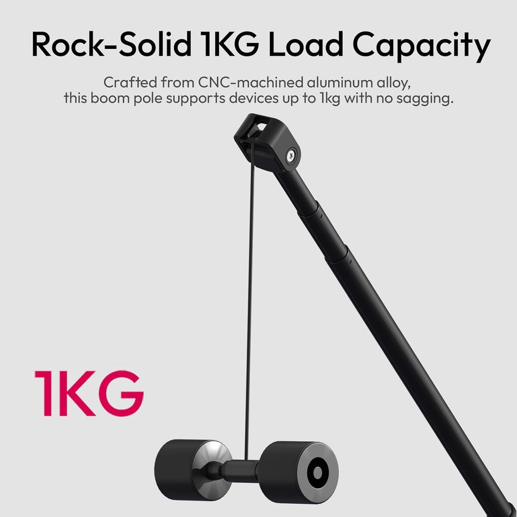 ¿Necesitas acercar el micrófono al sujeto sin que el brazo salga en el encuadre? Con su diseño telescópico de 3 secciones, se extiende hasta 1 metro de longitud. Captura audio nítido y cercano mientras mantienes el equipo fuera de la vista de la cámara.