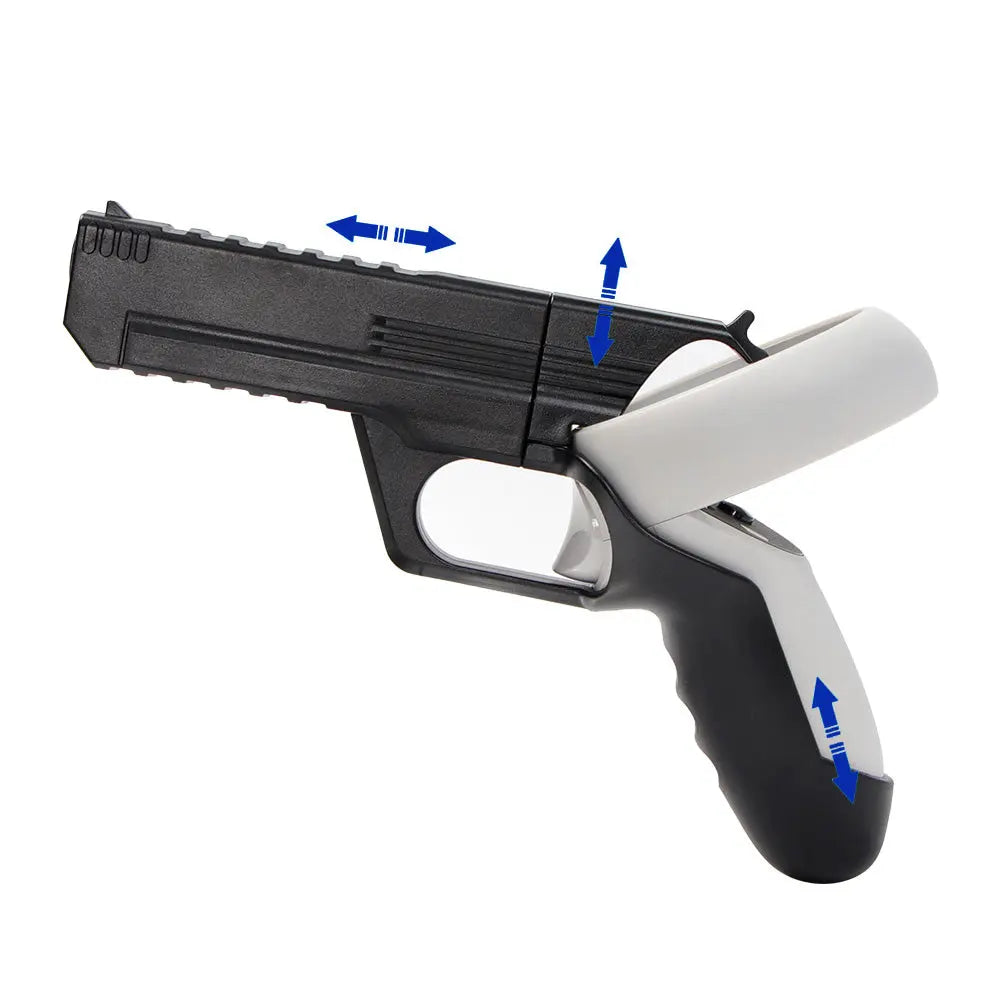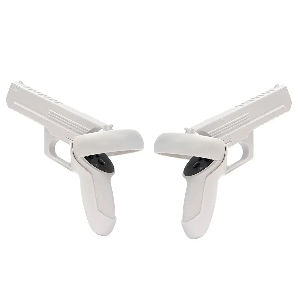 Las pistolas VR magnéticas para Oculus Quest 2 mejoran la experiencia de juego en los FPS y la hacen más realista. El set se componen de dos pistolas duales magnéticas, cada una con un estabilizador que ayuda a mantener una posición estable mientras se juega.