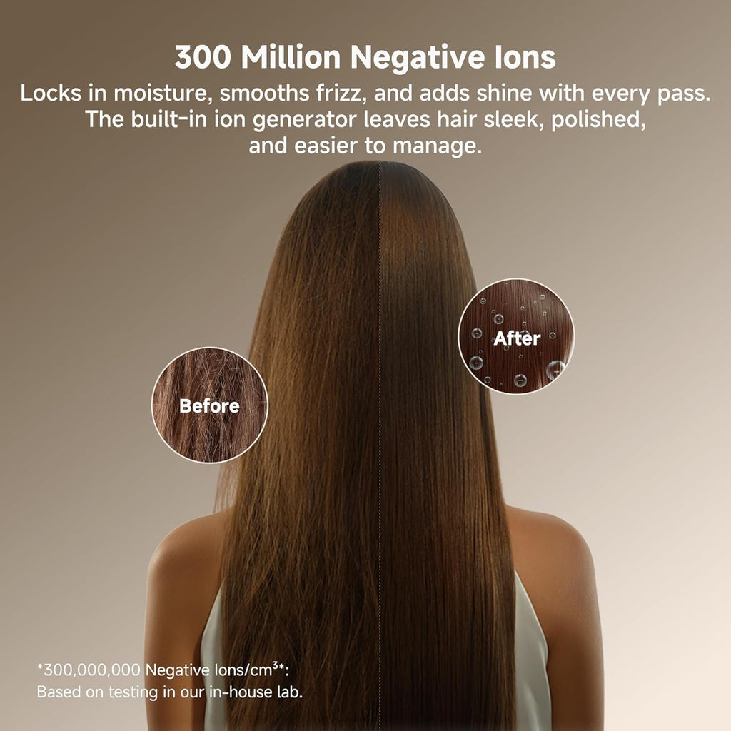 Dile adiós al frizz. Una corriente masiva de iones negativos sella la cutícula, retiene la humedad y deja tu cabello suave, manejable y con un brillo espectacular.