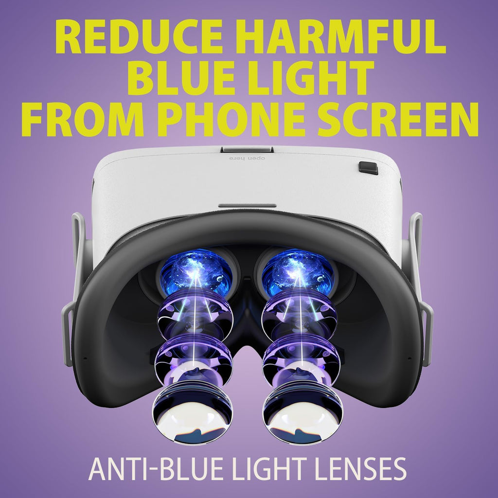 - Lentes HD con protección ocular: Priorizamos la experiencia de nuestros clientes y, al igual que los V4, insistimos en que los auriculares V5 tengan una transmitancia de luz del 94 % y un revestimiento antirreflejos y antiluz azul para evitar la fatiga visual. Además, la superficie asférica y antidistorsión de la lente permite obtener imágenes nítidas en HD. Te recomendamos que tomes un descanso cada media hora mientras juegas VR para maximizar la protección de tus ojos.
