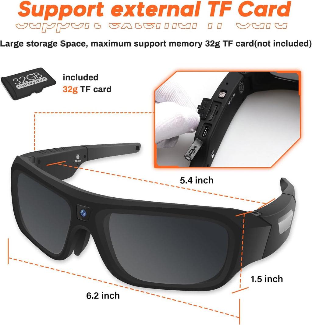 Esta cámara con gafas de sol incorpora una batería de litio de gran capacidad y puede grabar hasta 120 minutos después de cargarse por completo.