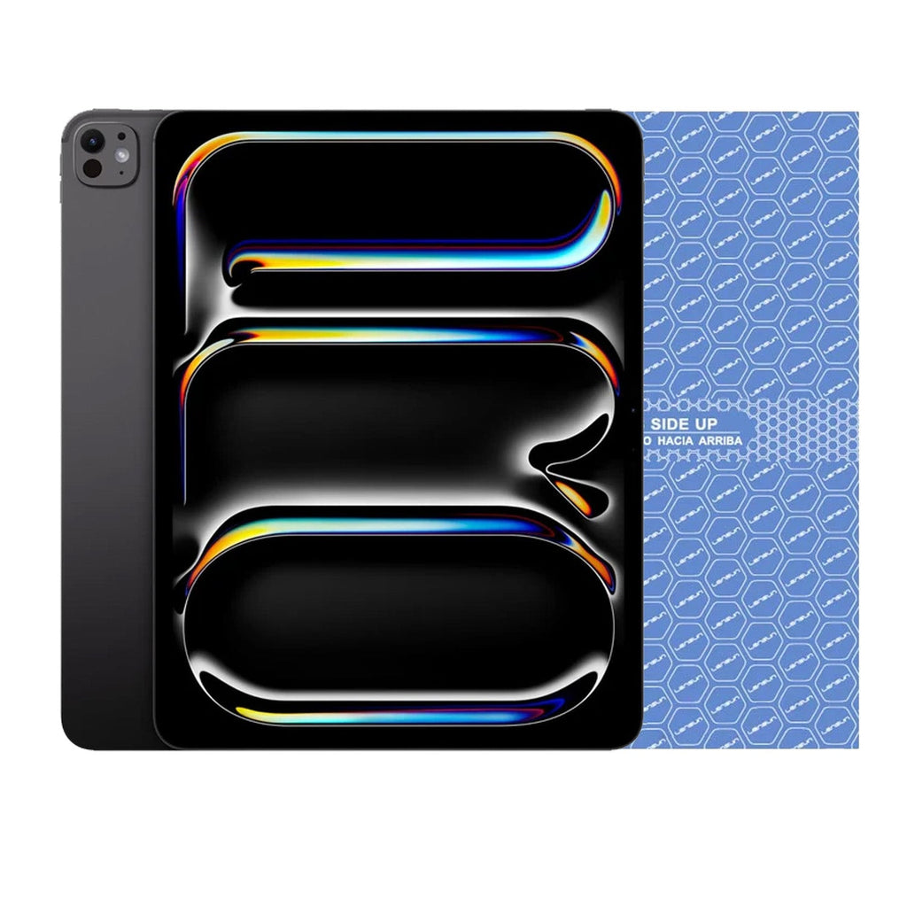 El iPad Pro de 13 pulgadas es el modelo más delgado hasta la fecha, con solo 0,51 centímetros de grosor. Incluye cámara frontal en posición horizontal y sensores Face ID para mayor seguridad. Disponible en plata y negro espacial.