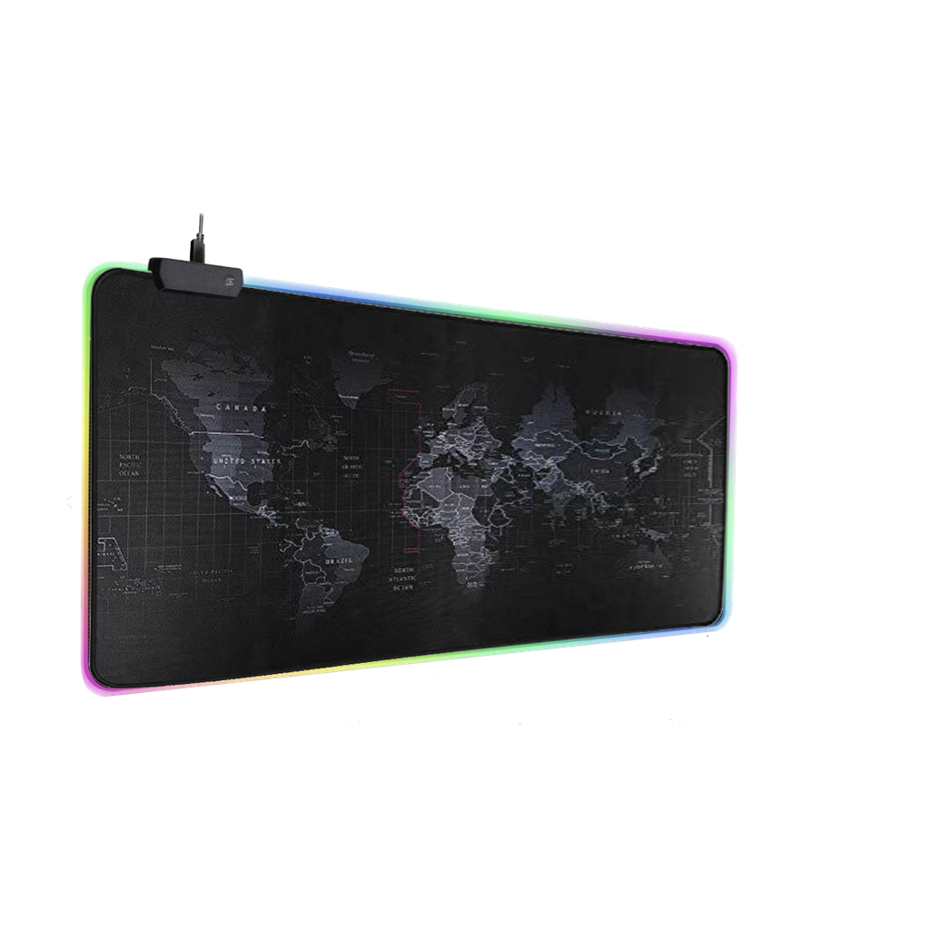 Este mousepad cuenta con 7 colores de iluminación RGB, incluyendo azul, rojo, verde, blanco, morado, cian y amarillo, con 14 modos de iluminación para personalizar tu entorno de juego. Alimentado mediante un cable USB de 1.8m, su base de goma firme evita que se deslice sobre la superficie, mientras que la capa superior de microfibra suave está optimizada para un equilibrio perfecto entre velocidad y control, permitiendo movimientos precisos. Además, su superficie resistente al agua asegura una mayor durabilidad, protegiéndolo de posibles derrames.