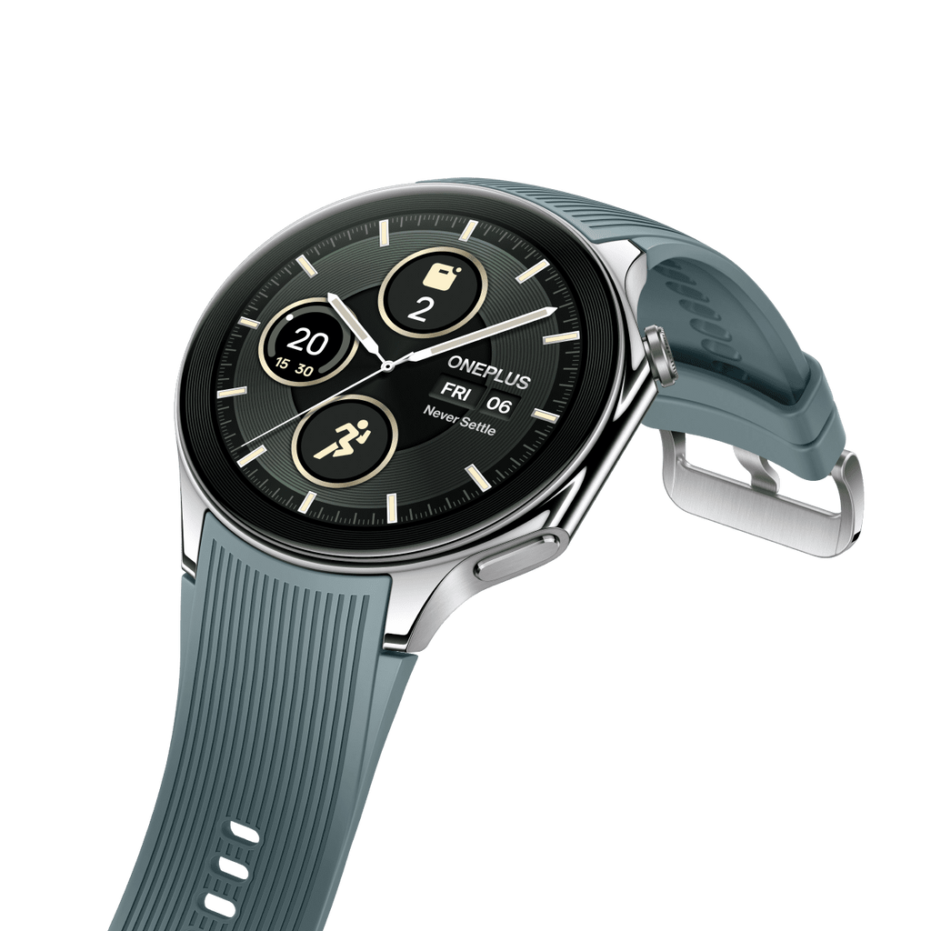 El diseño del OnePlus Watch 2 refleja una elegancia robusta con su marco de acero inoxidable y cristal de zafiro. Inspirado en el estilo refinado escandinavo, su acabado en acero negro o azul nórdico no solo resalta su aspecto lujoso, sino que también garantiza una resistencia a golpes y arañazos. Este reloj ha sido diseñado para acompañarte tanto en situaciones cotidianas como en momentos extremos, manteniéndose funcional y estéticamente impecable en cualquier entorno.