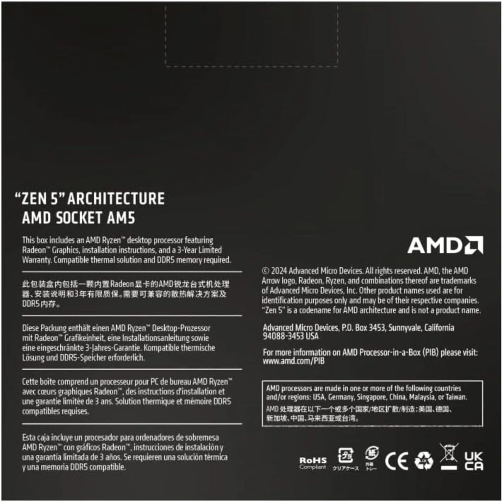 Impulsado por la eficiente arquitectura Zen 5, este procesador ofrece un notable incremento en rendimiento por watt, lo que se traduce en mayor potencia con menor consumo energético. La compatibilidad con PCIe 5.0 garantiza velocidades de transferencia ultra rápidas, ideales para aprovechar al máximo unidades SSD NVMe de última generación y tarjetas gráficas de alto rendimiento.
