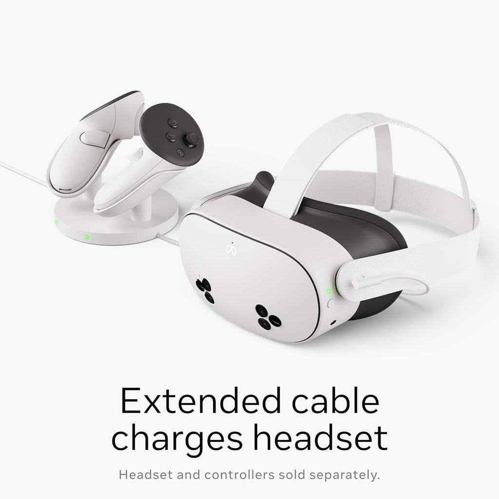 Base de carga compacta Quest — Compatible con Quest 3/3S — Cable de carga extendido para auriculares — Carga inalámbrica para controles táctiles y más
