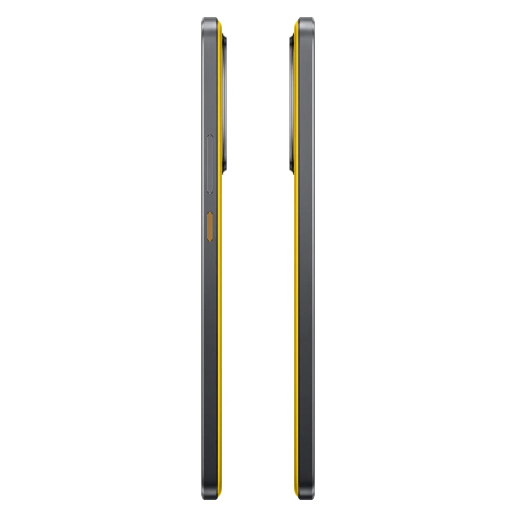El Realme GT 7T no pasa desapercibido. Con tan solo 8,25 mm de grosor y un peso de 202 gramos, sorprende por su gran equilibrio entre elegancia y potencia. Disponible en azul, negro y un vibrante amarillo, su diseño trasero es una declaración de estilo audaz. El módulo de cámaras, aunque sólo con dos sensores, es generoso y sobresale ligeramente, aportando carácter al dispositivo.