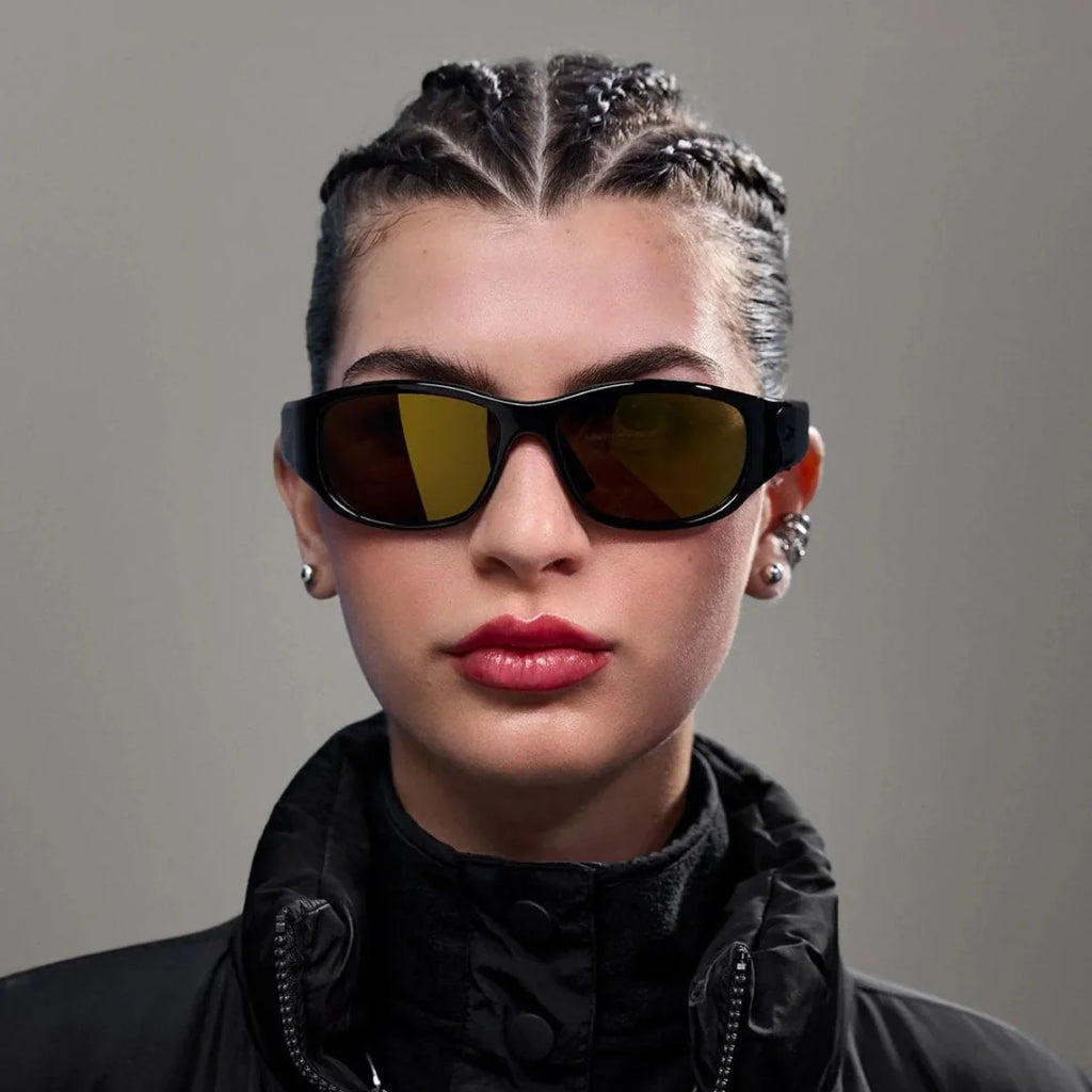 Vista frontal de los lentes inteligentes Reebok Nitrous en un entorno extremo