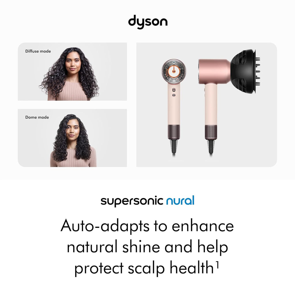 Conoce el nuevo Dyson Supersonic Nural™, el secador de pelo más inteligente de la historia. Equipado con una red de sensores invisibles, activa nuevas funciones automáticamente para optimizar tu rutina. No solo seca rápido; protege tu cuero cabelludo y realza el brillo natural de tu cabello ajustando el calor por sí mismo.