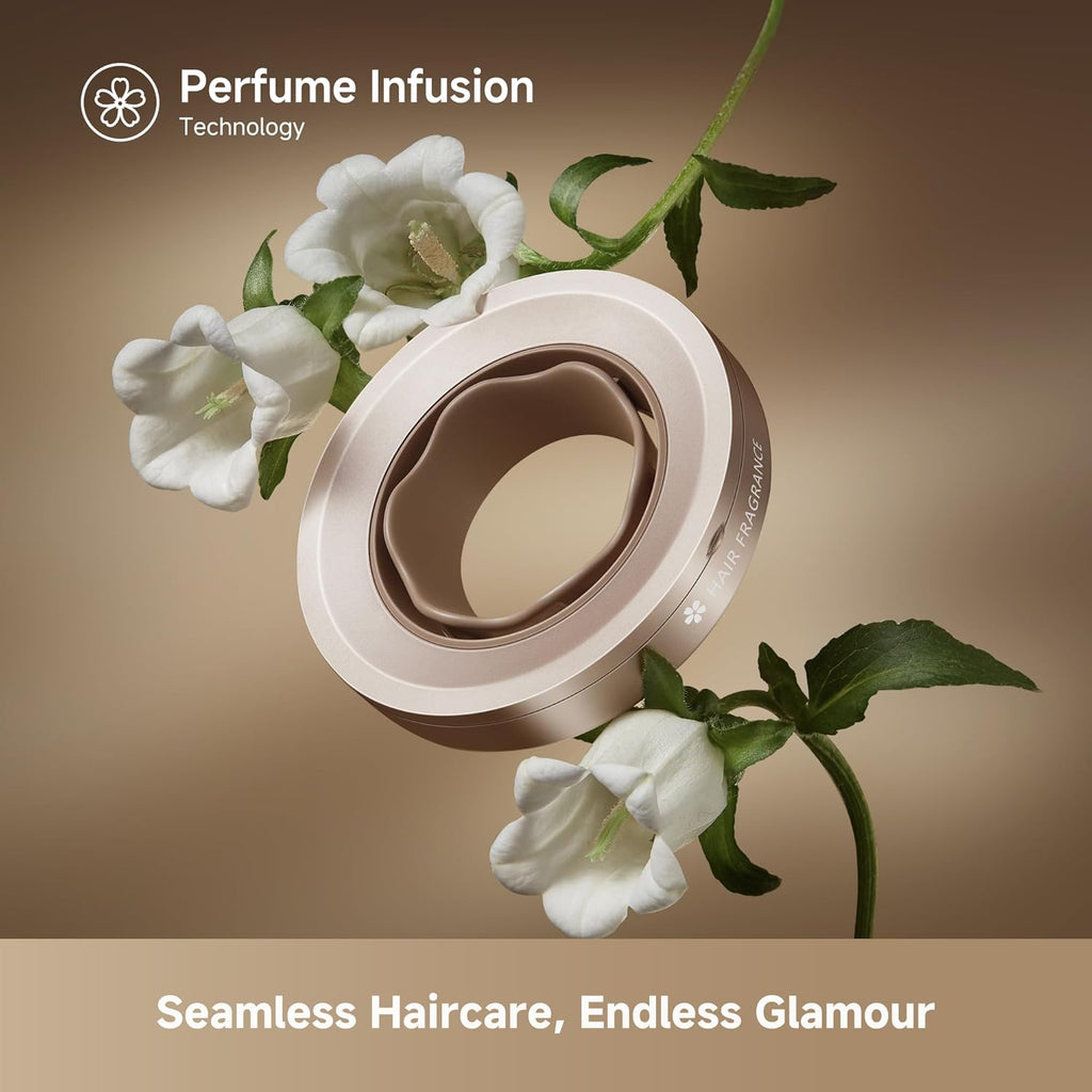 El anillo magnético libera un aroma fresco de campanilla que dura hasta 8 horas. Tu cabello no solo lucirá increíble, olerá increíble. Una experiencia sensorial única.