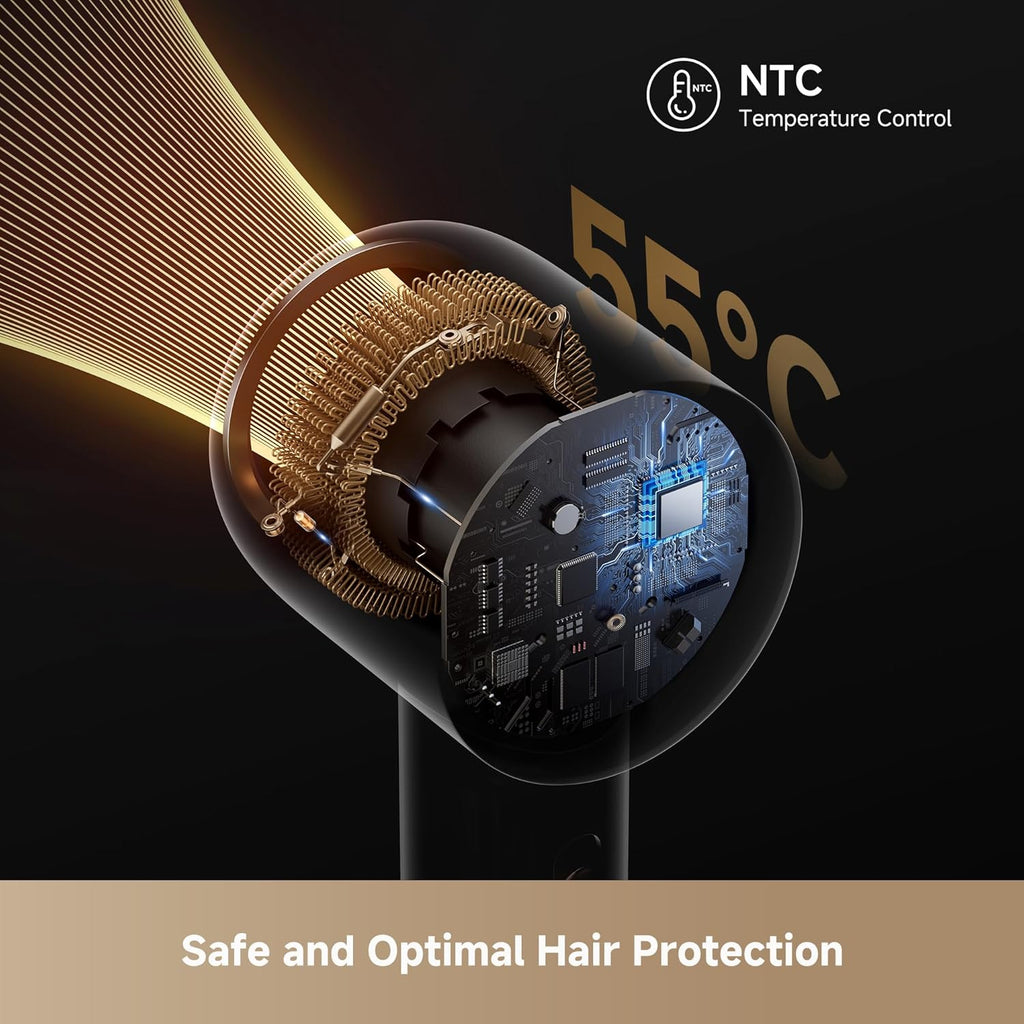 ¿Prisa en la mañana? El motor de 110,000 RPM genera un flujo de aire de 70 m/s que seca el cabello hasta los hombros en tiempo récord. Sin calor extremo, solo velocidad pura.